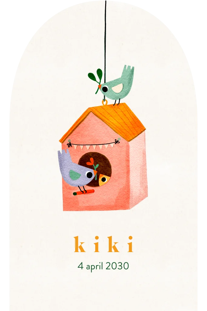 Geboortekaartje boogvorm vogelhuisje vogeltjes