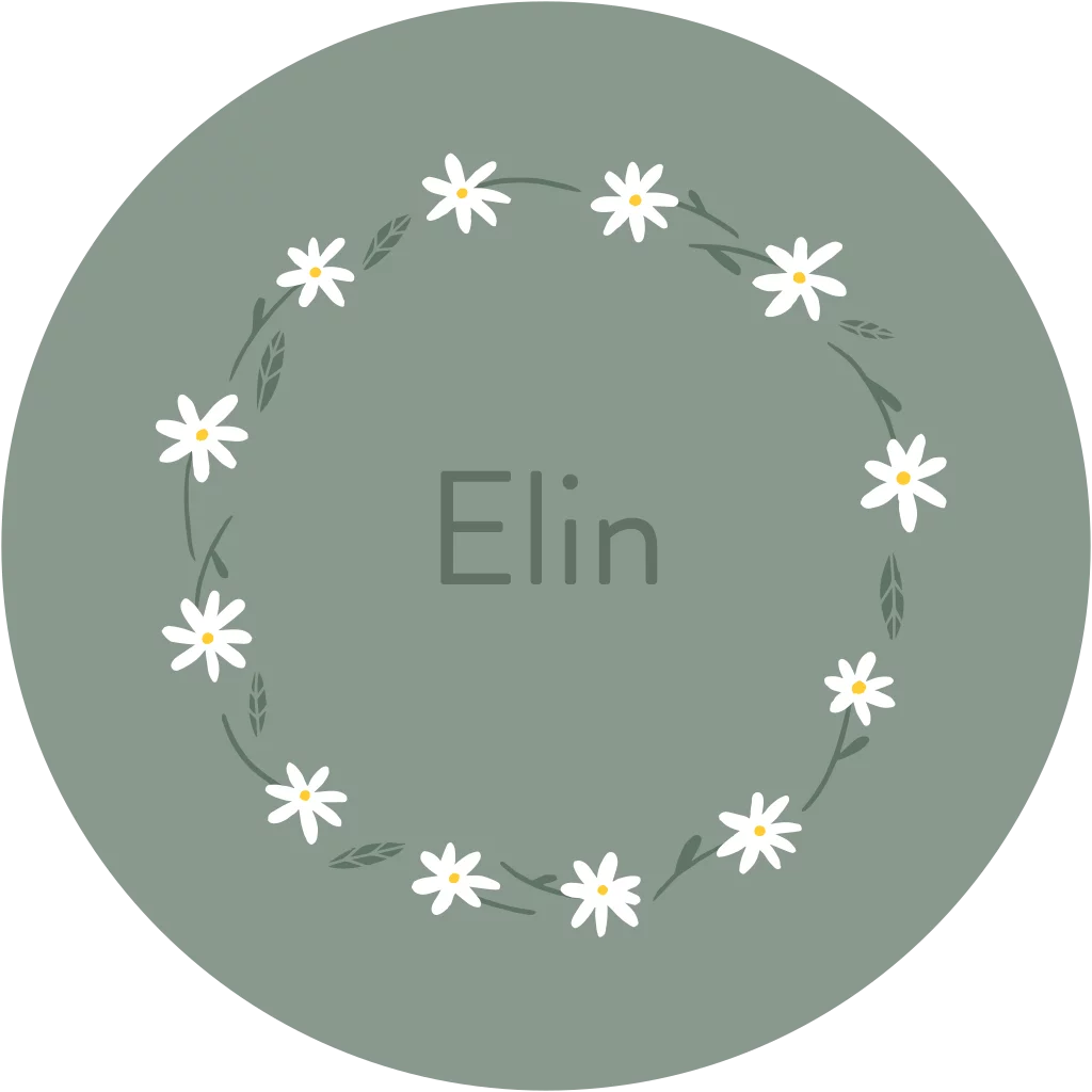 Een rond rustig geboortekaartje met een lieve krans van bloemetjes.