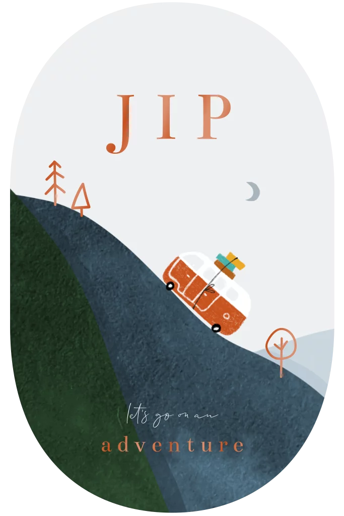 Een unieke geboortekaart met waterverf illustratie en een volkswagen camper busje, perfect voor avonturiers! De hoogglans details maken het helemaal af. Kies zelf welke kleur je leuk vindt.