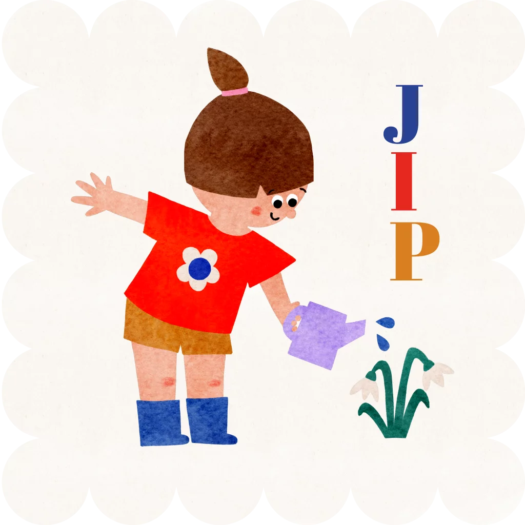 Een vrolijk geboortekaartje in hippe frisse kleuren in bijzondere vorm, met een meisje met laarsjes aan wat een sneeuwklokje water geeft. Het staartje kun je verwijderen. Liever een andere haarkleur/andere kleuraanpassing? Stuur even een mailtje, dan passen wij het voor je aan!