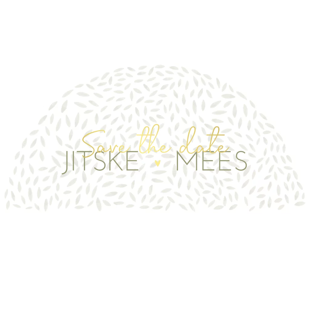 Deze Save the date in halve cirkel past bij de trouwkaart Cirkel bruidspaar bomen bloemen.