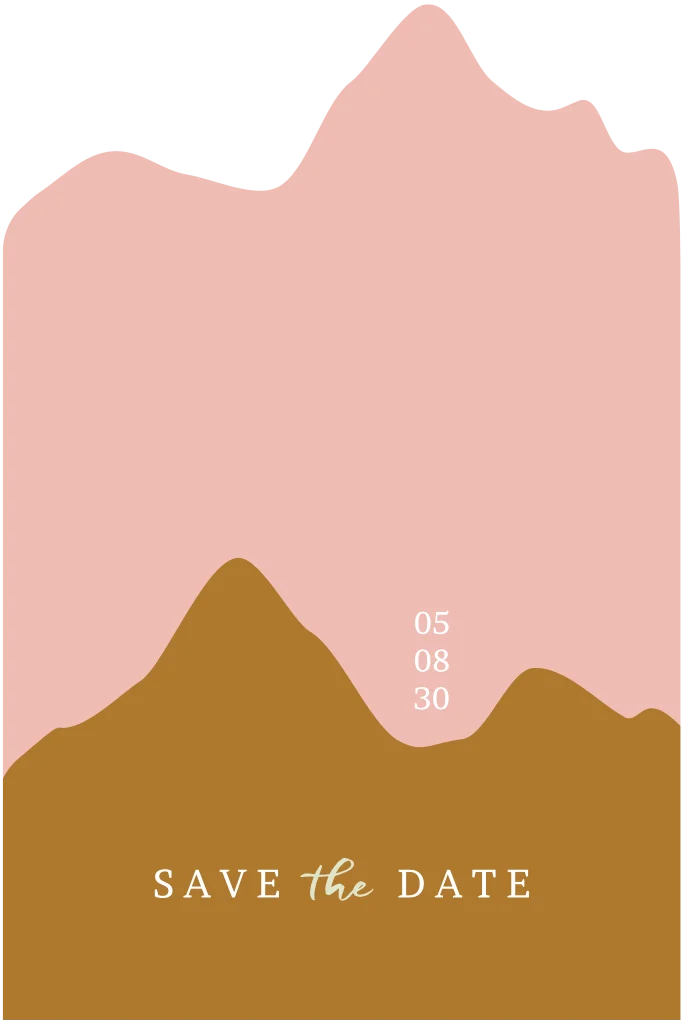 De warme aardetinten en zachte roze kleuren geven deze natuurlijke save the date een rustieke en stijlvolle uitstraling. Het berglandschap is een perfecte keuze voor natuurliefhebbers. Deze minimalistische save the date past prachtig bij de trouwkaart uit dezelfde bergencollectie.
