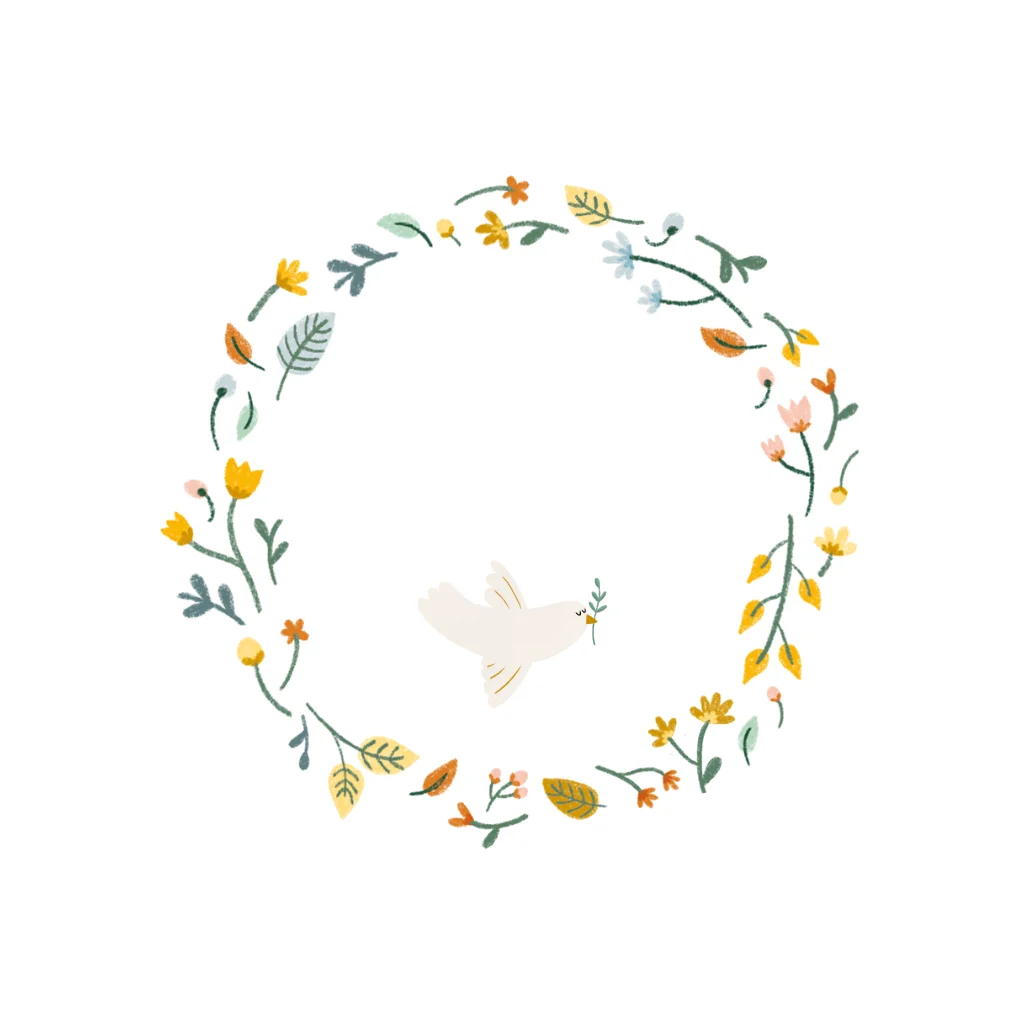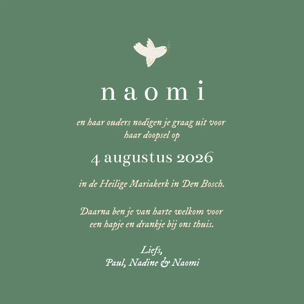 Dit kaartje is een mooie uitnodiging voor een doop, communie of lentefeest. Het is perfect voor een lief meisje, met een mooie bloemenkrans en goudfolie details. Aan de binnenzijde is ruimte voor een foto.