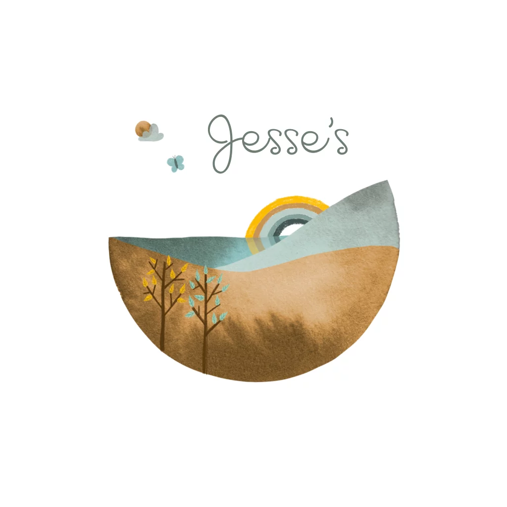 Een lieve uitnodiging die verstuurd kan worden voor een doop, doopsel of opdragen van een kindje, met een waterverf illustratie van een landschap en regenboog.