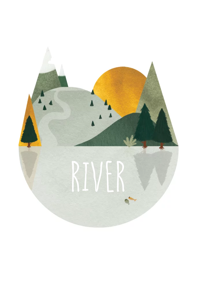 Een geboortekaartje met bergen, een rivier en een meer, waar de naam in geschreven staat in goudfolie. Kies zelf de foliekleur of ga voor een andere kleur zonder folie.