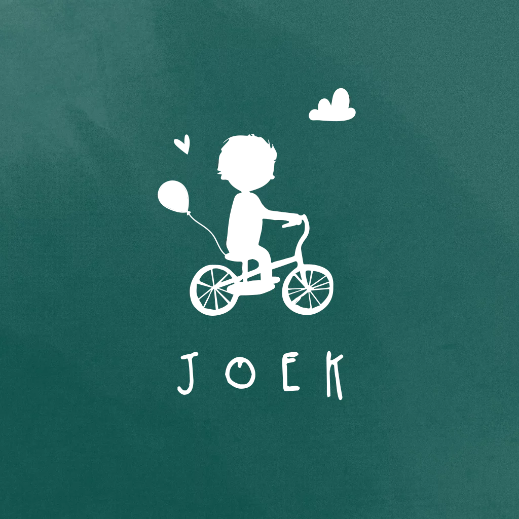 Een minimalistisch geboortekaartje met een jongetje fietsje in goudfolie. Je kunt bij Silhouetjes (of Foliedruk) ook een meisje op fietsje kiezen, mail mij even om het om te zetten naar een folie fietsje voordat je besteld.