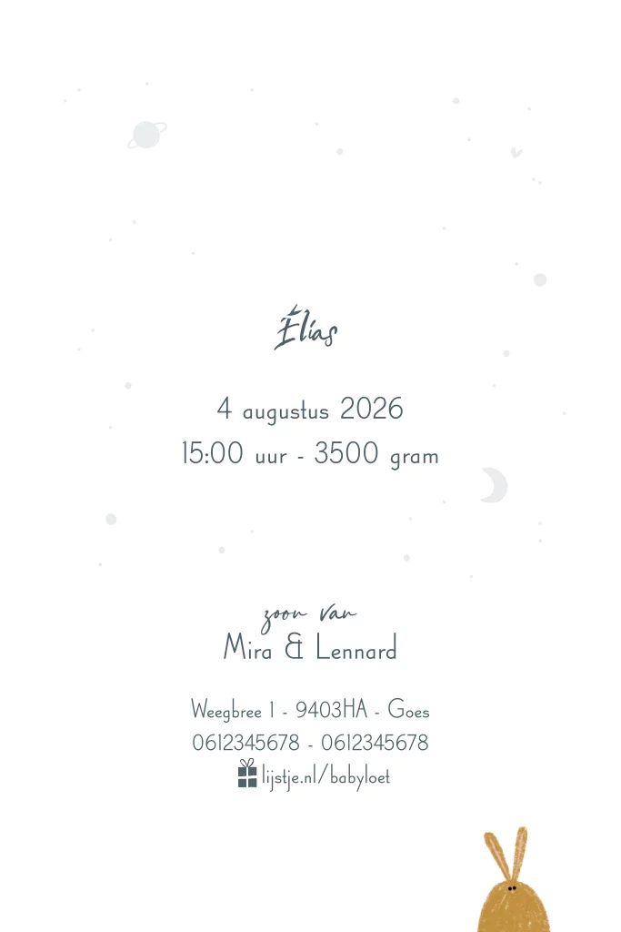 Geboortekaartje heelal konijntje goudfolie