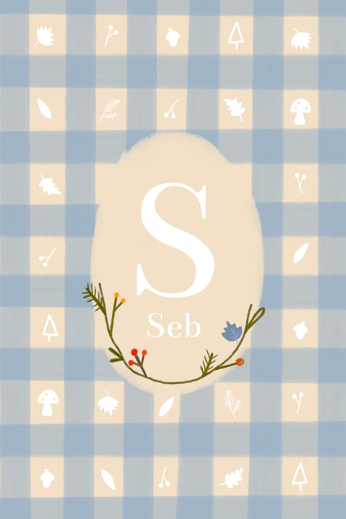Dit geboortekaartje met blauw ruitjespatroon en subtiele herfst goudfolie details is een echte blikvanger. Het elegante ontwerp combineert een speelse lieve, natuurlijke uitstraling met een vleugje luxe. Perfect om de komst van jullie kindje op een stijlvolle manier aan te kondigen.