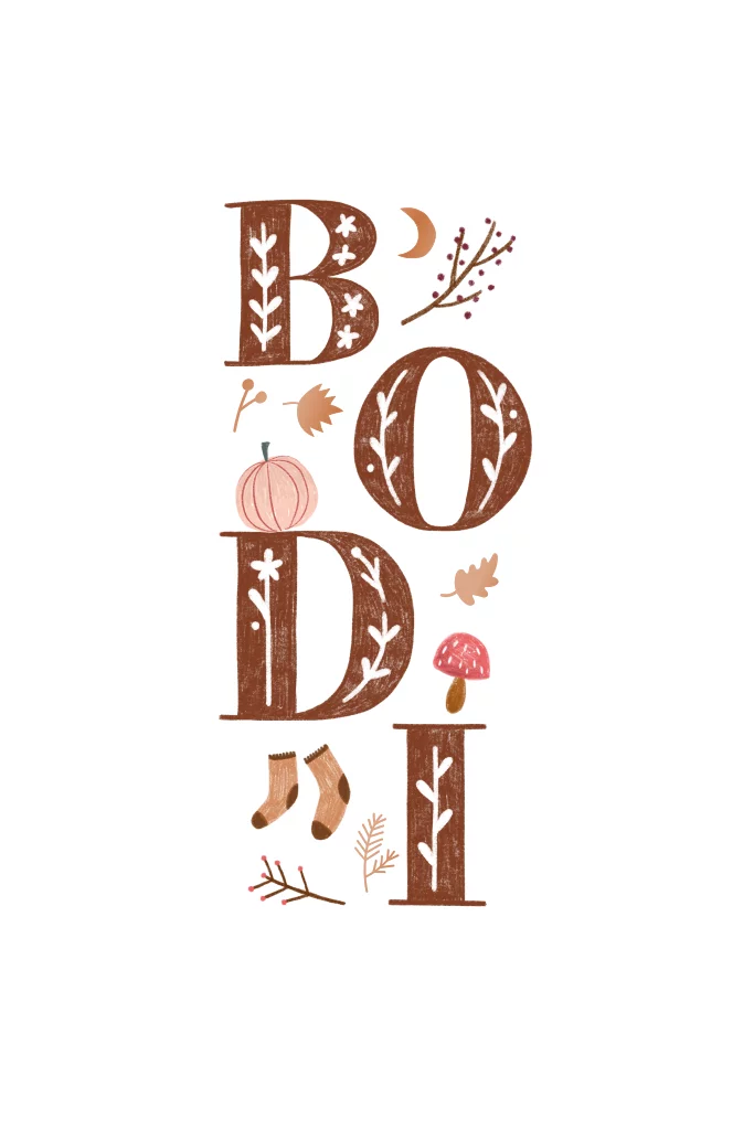 Een geboortekaartje met herfst elementjes en de naam in stoere herfst letters. Je kunt zelf in de editor het alfabet aanpassen en alle elementjes op een andere plek zetten. Voeg ook nog wat leuks toe!