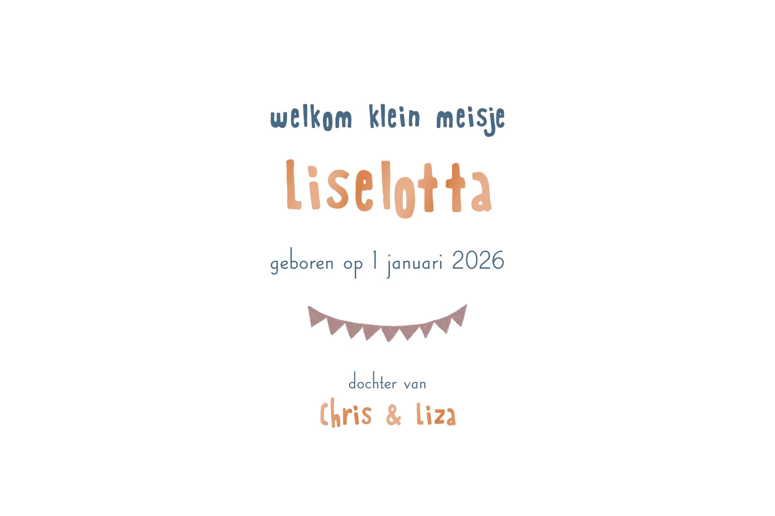 Een uniek geboortekaartje waarbij de naam onderdeel is van het kaartje. Het wiegje kun je eenvoudig aanpassen via de beeldbank > afbeeldingen & versieringen > wiegjes. Liever andere kleurstelling achtergrond? Mail dan eventjes!