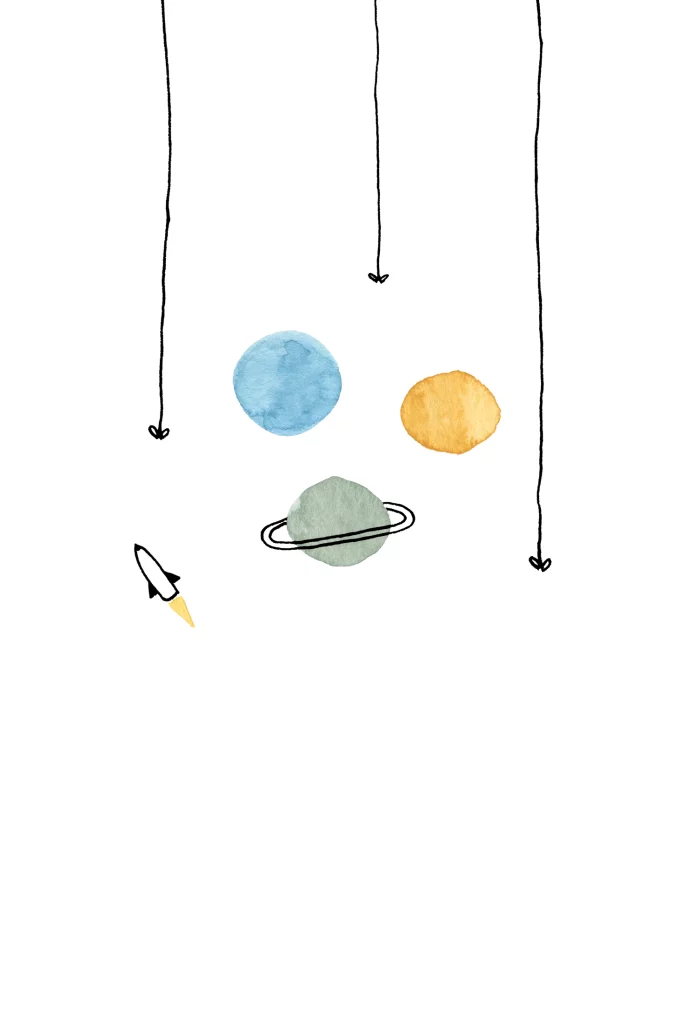Een dromerig geboortekaartjes met planeten en goudfolie. Voor de kleine onderzoeker.