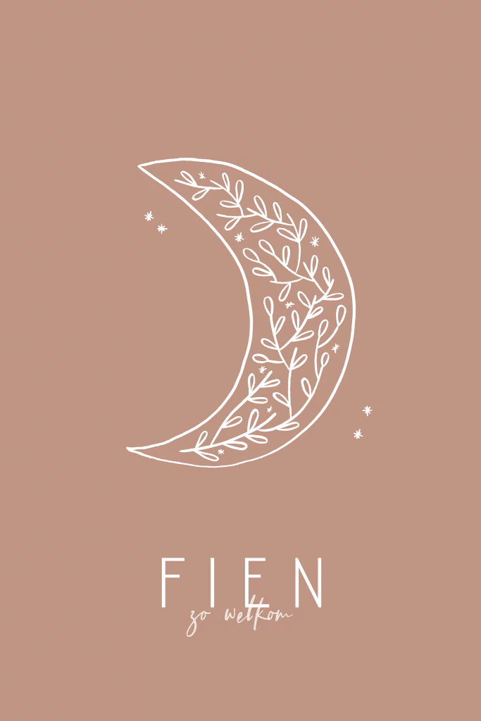 Een stoer geboortekaartje met een maantje met plantjes, in zwartfolie. Kies zelf een andere kleur goudfolie en andere kleuren voor de achtergrond.