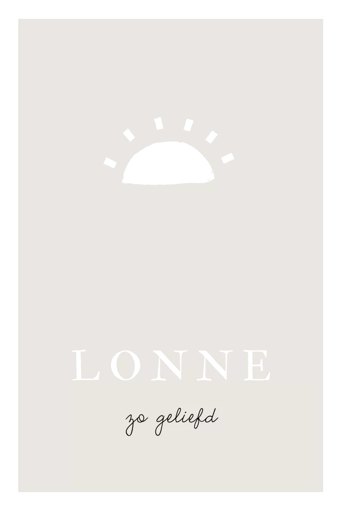 Een mooi rustig geboortekaartje met een zonnetje van folie. Kies zelf de foliedruk, zwarte folie is ook erg mooi bij dit kaartje.