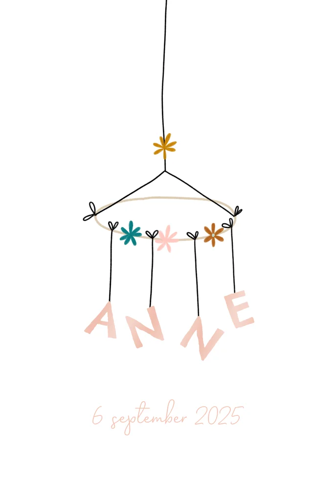 Geboortekaartje mobile naam hoogglans bloemetjes