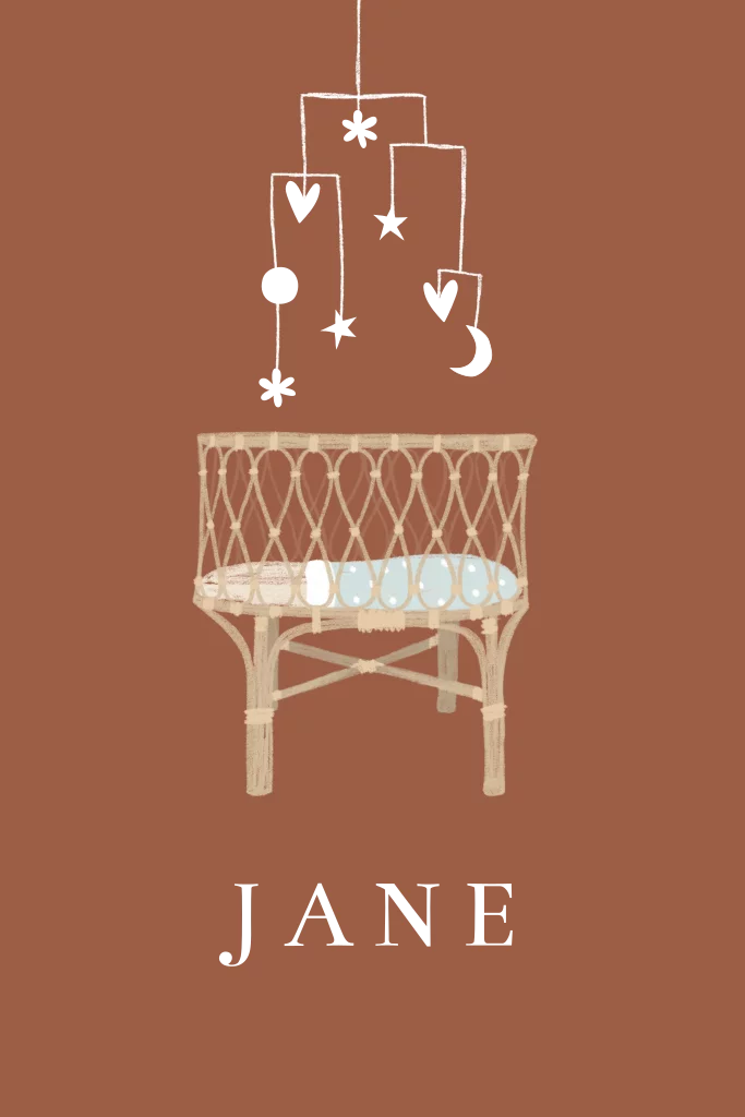 Geboortekaartje rotan wiegje mobiel