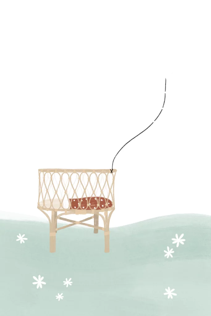 Geboortekaartje rotan wiegje vlieger bloemetjes
