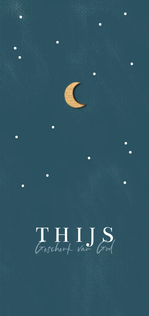 Geboortekaartje sterren met houten maantje