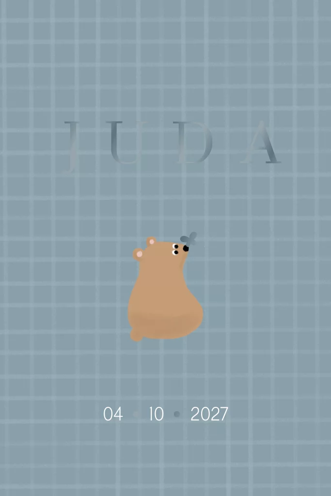 Dit lieve geboortekaartje heeft rustige tinten en een illustratie van een lief beertje met een vlinder op zijn neus. De achtergrond heeft subtiele ruitjes en een mooie rustige blauwe kleur. Je kunt de hoogglans kleuren wijzigen en de verdere kleuren ook!