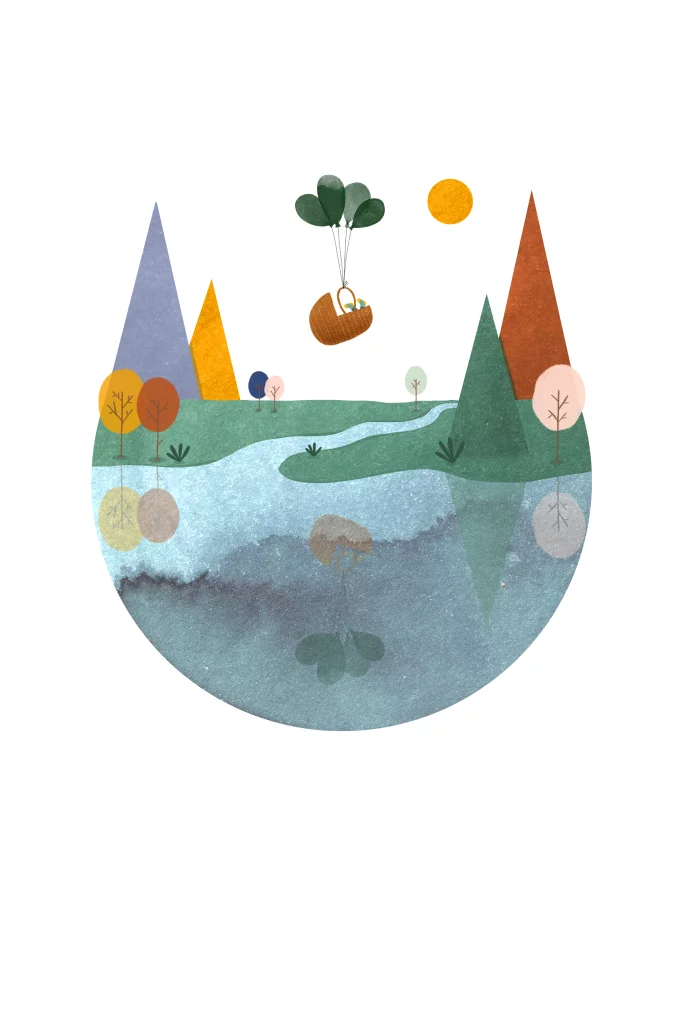 Geboortekaartje waterverf bergen rivier ballon
