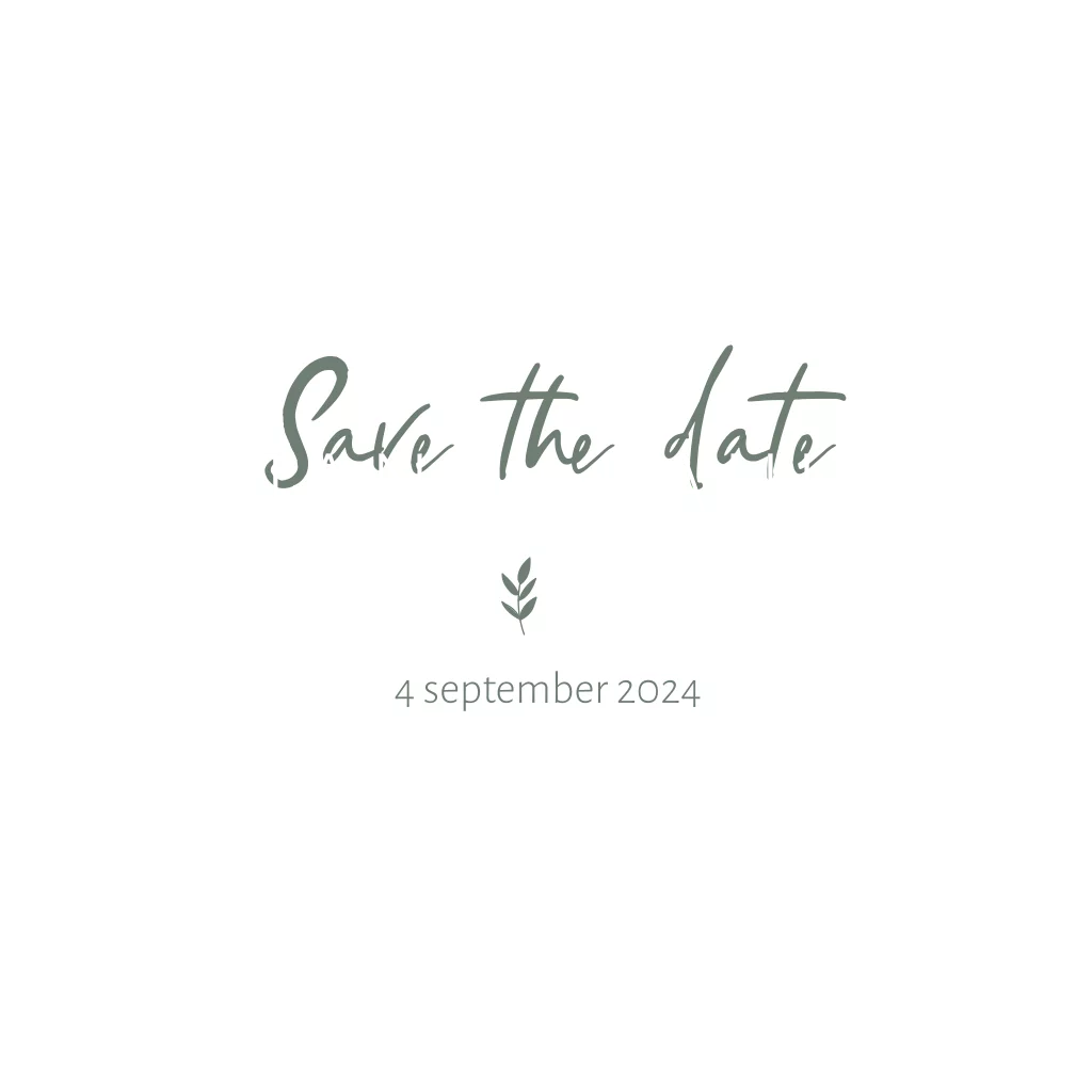 Minimalistische Save the date, met takjes in goudfolie. Personaliseer het kaartje met een mooie foto van jullie op de achterkant! Mooi op de papiersoort Linnen.