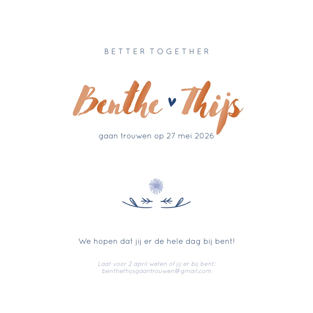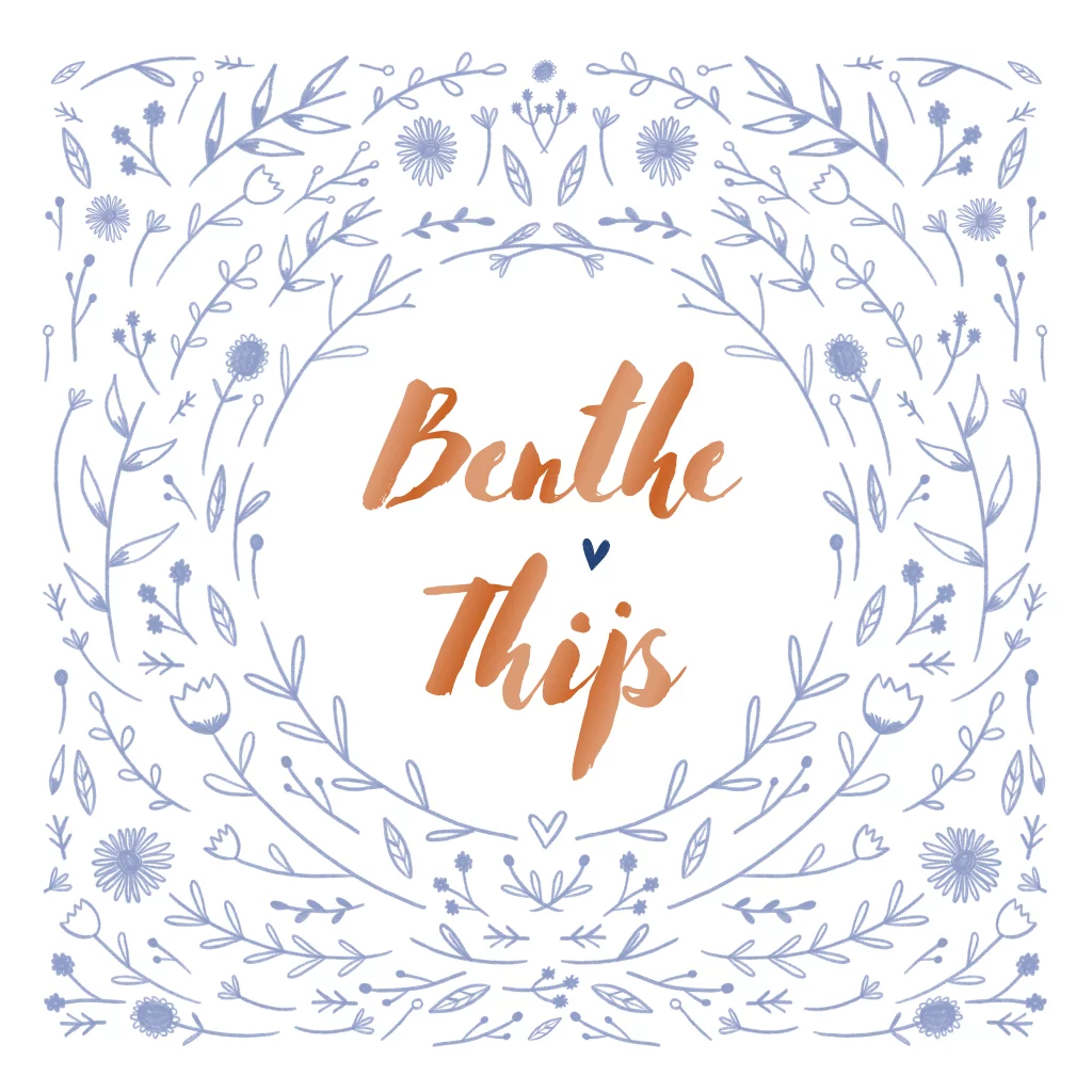 Deze trouwkaart is volledig aan te passen qua kleur, gevuld met illustraties van lieve bloemen en plantjes. Maak het kaartje helemaal af met hoogglans details!