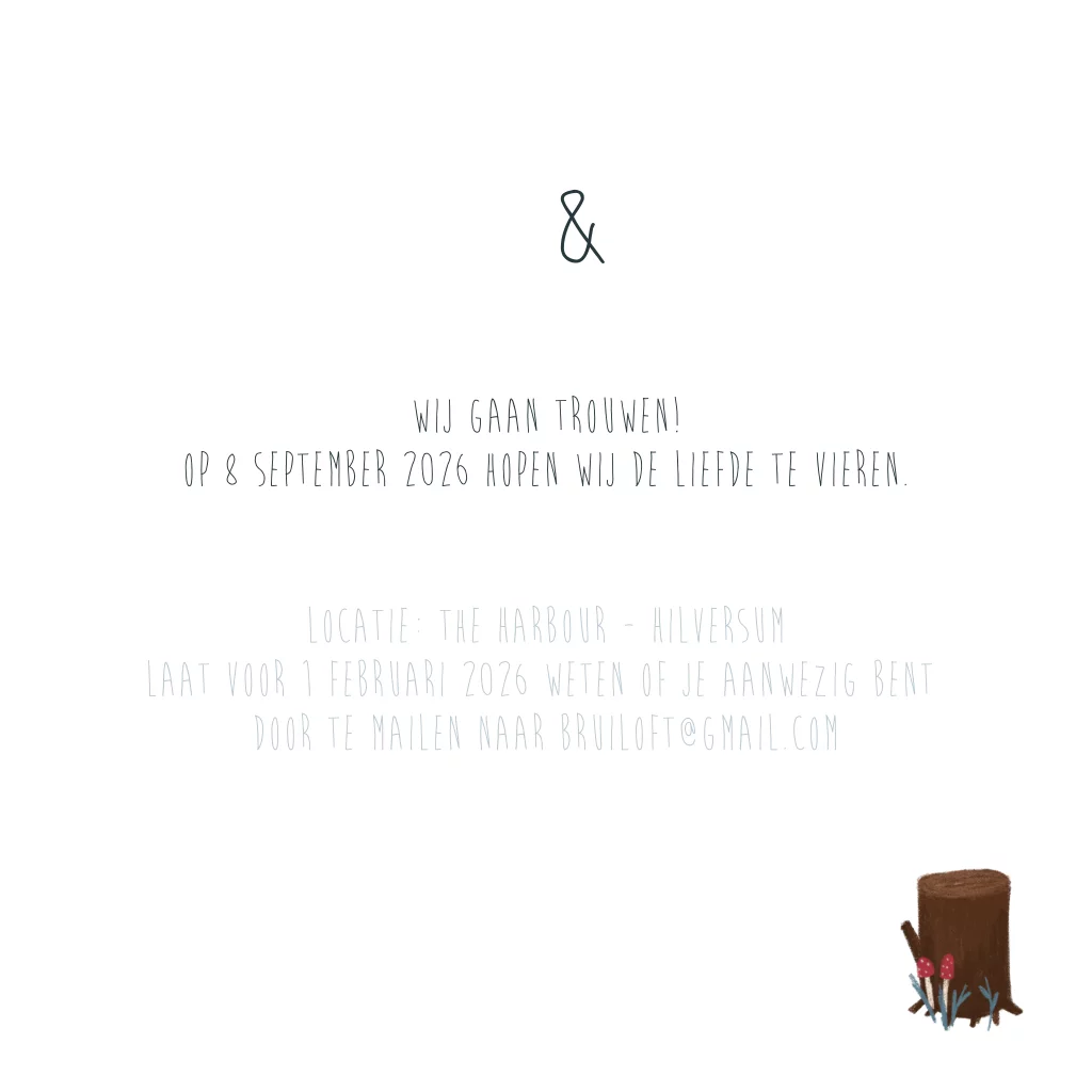 Trouwkaart bos diner sterrenhemel bomen goudfolie