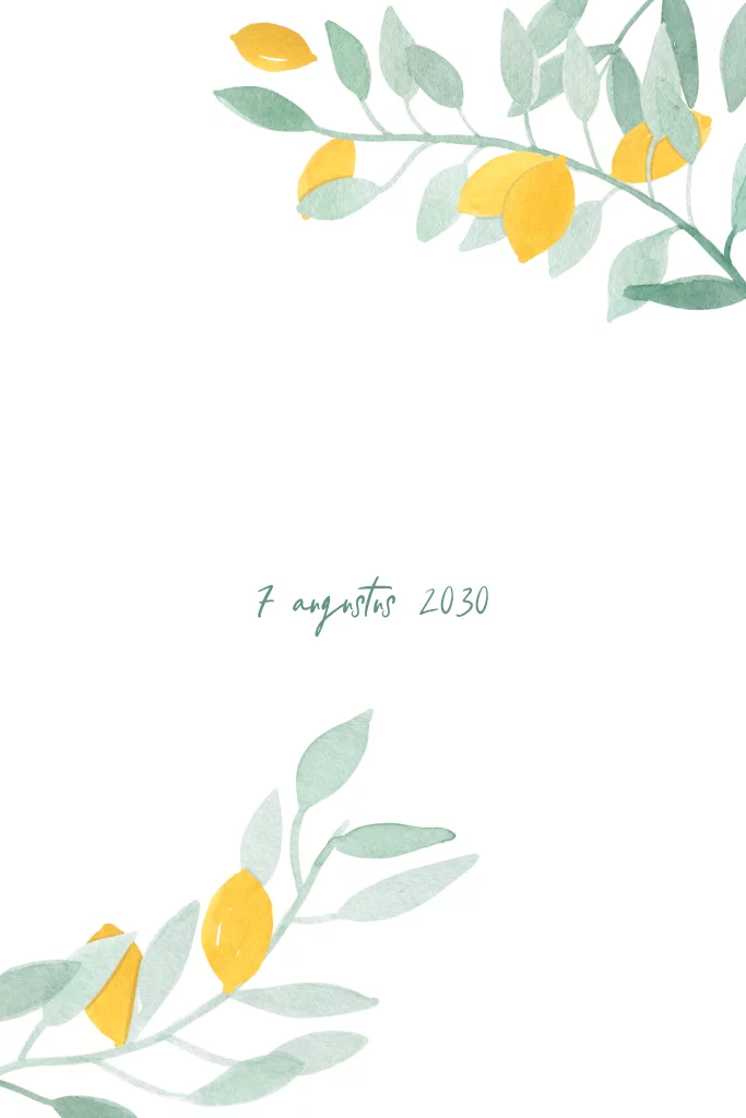 Een minimalistische trouwkaart met waterverf plantjes en citroenen. Het zwartfolie maakt het tot een mooie stoere kaart.