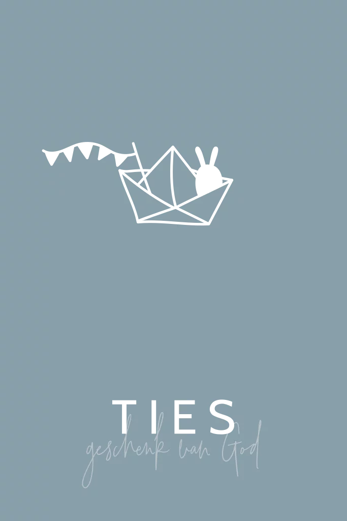 Een rustig kaartje met een lief papierenbootje met een konijntje erin. Op dit kaartje kun je mooi de betekenis van de naam laten zien.