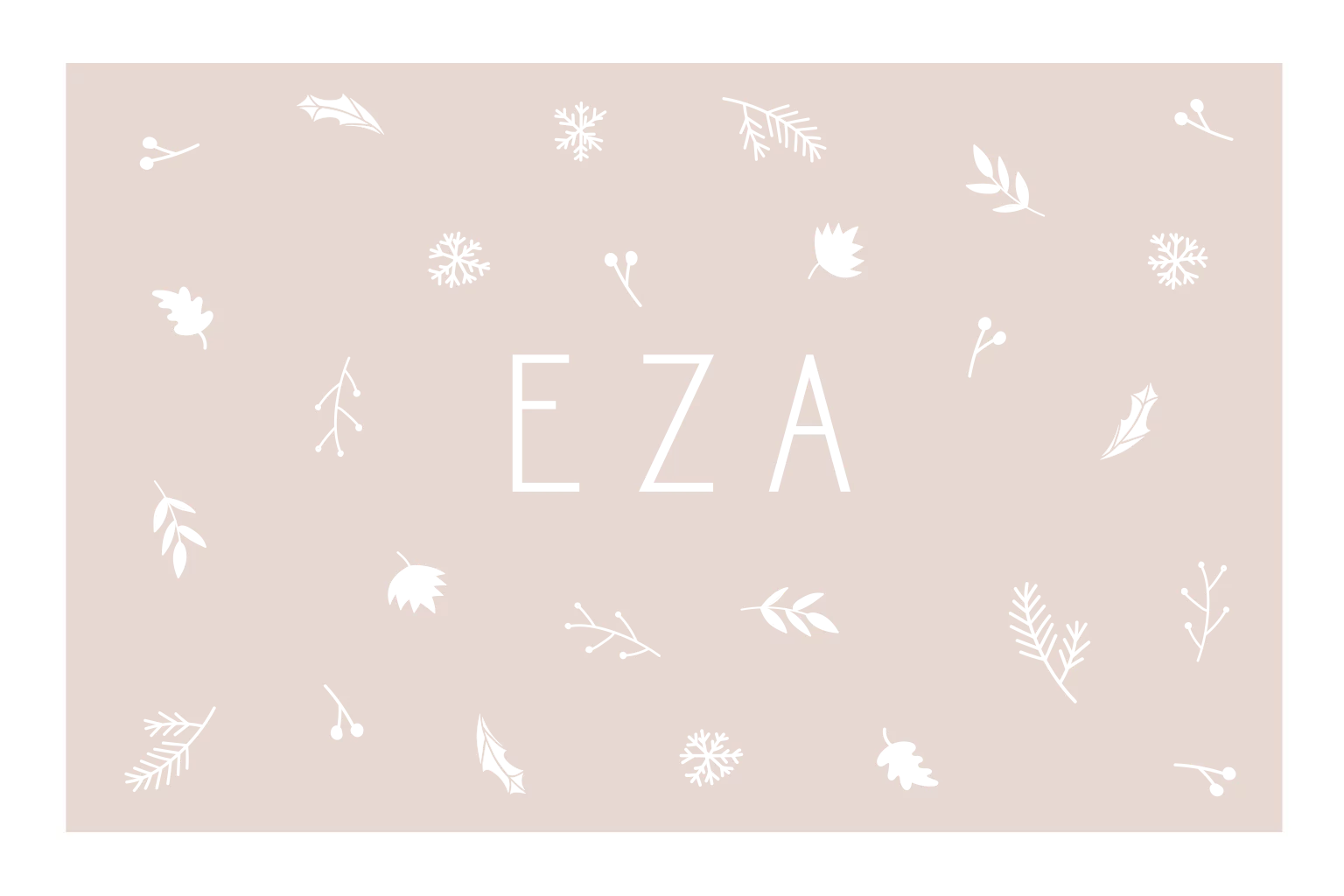 Een lief geboortekaartje met een patroontje van wintertakjes in rosegoudfolie.