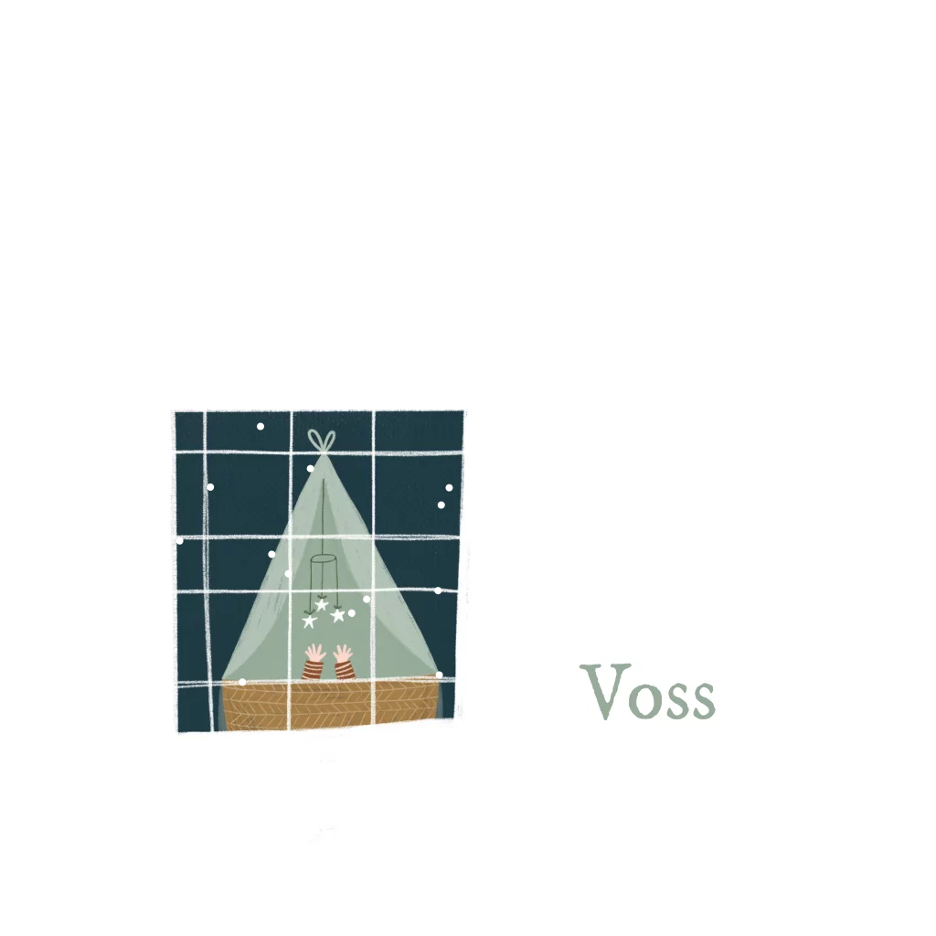 Een winters geboortekaartje voor een jongen (of meisje natuurlijk!) met een wiegje die voor het raam staat, terwijl het buiten gezellig sneeuwt. Liever een andere kleur wiegje? Stuur me een mailtje! Dit kaartje is erg mooi op de papiersoort Linnen.