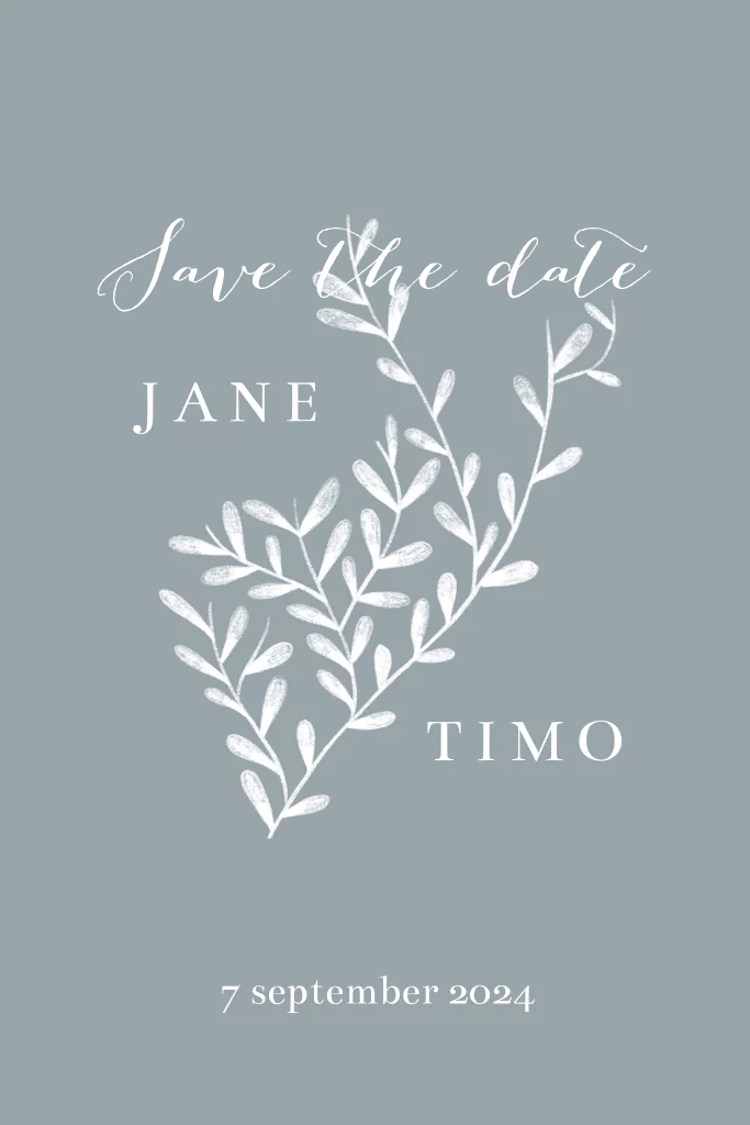 Save the date passend bij de trouwkaart Botanisch patroon. Een mooie rustige kaart, die goed aansluit bij de wat drukkere trouwkaart. Natuurlijk ook heel erg leuk om te zetten naar een trouwkaart!
