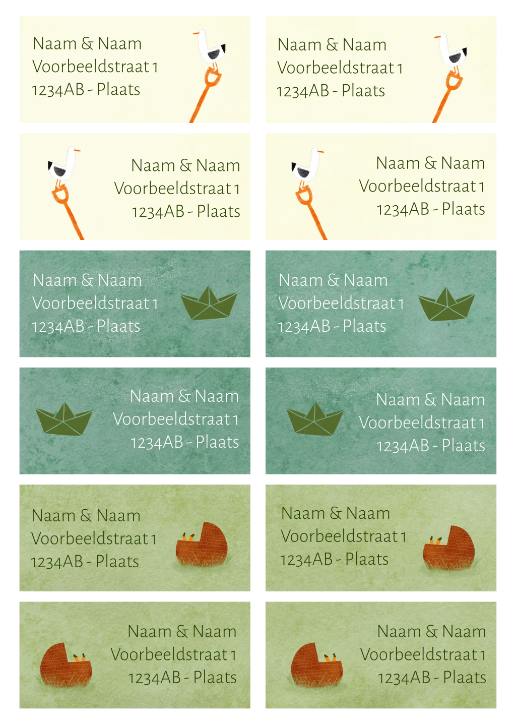 Maak zelf je adressticker! Op iedere sticker kan een ander adres ingevuld worden. Toch liever een ander ontwerp? Ook dat kan in de editor aangepast worden. Zo past jouw aangeklede envelop perfect bij het geboortekaartje en hoef je niks te schrijven! Wel zo handig.