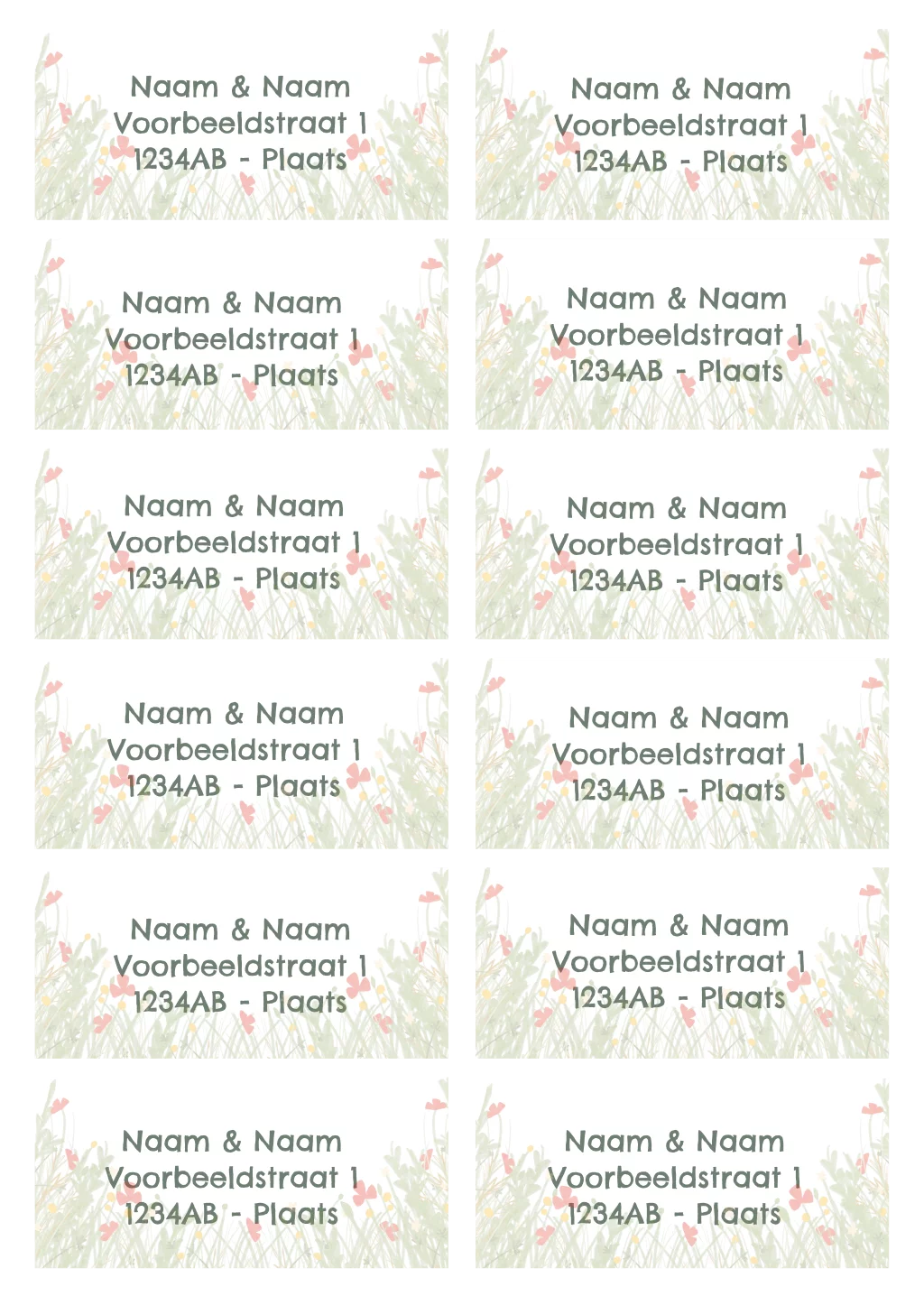 Maak zelf je adressticker! Op iedere sticker kan een ander adres ingevuld worden. Toch liever een ander ontwerp? Ook dat kan in de editor aangepast worden. Ieder vel bevat twaalf adresstickers.