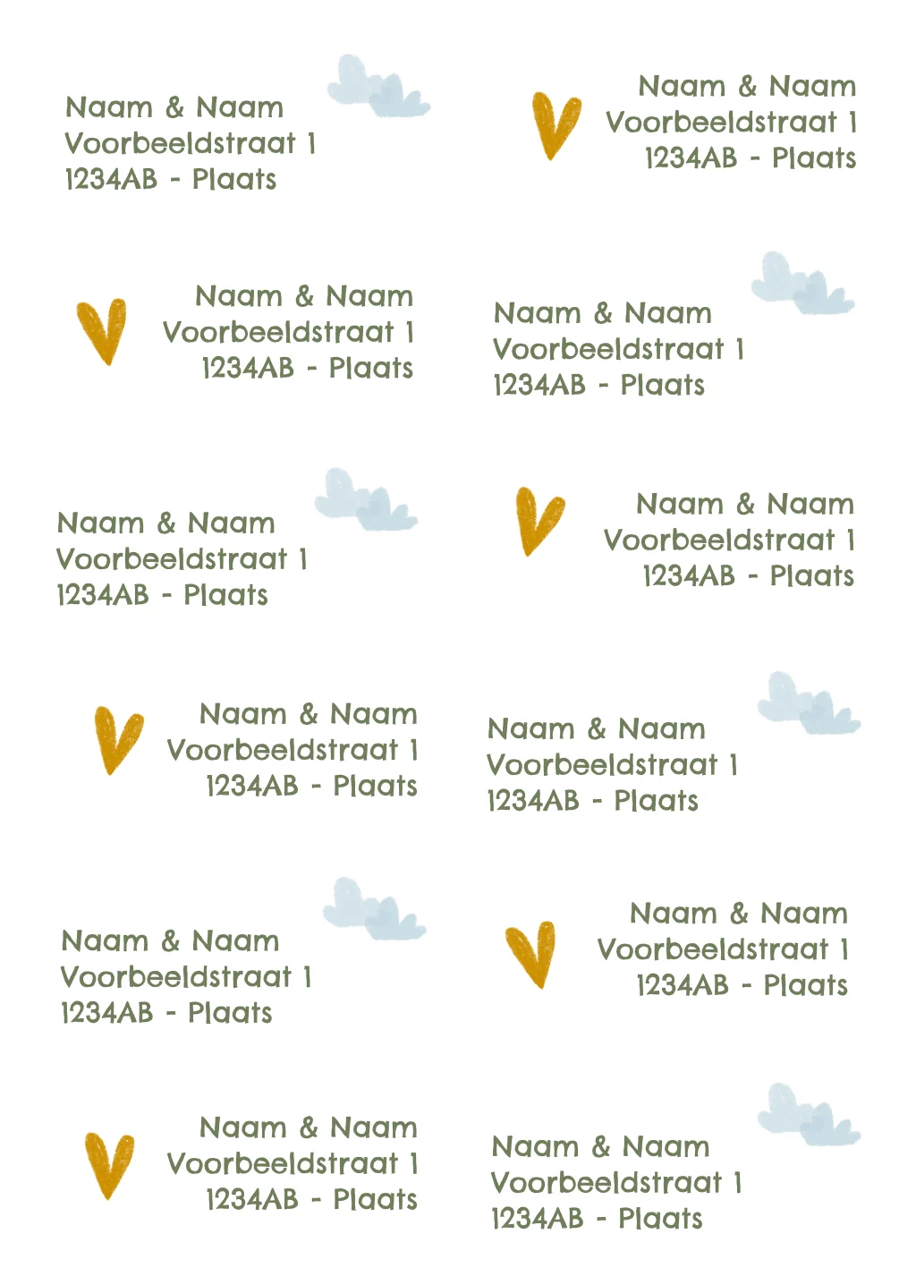 Maak zelf je adressticker! Op iedere sticker kan een ander adres ingevuld worden. Toch liever een ander ontwerp? Ook dat kan in de editor aangepast worden. Zo past jouw aangeklede envelop perfect bij het geboortekaartje en hoef je niks te schrijven! Wel zo handig.