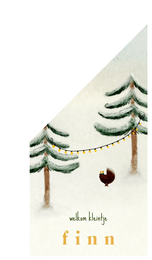 Geboortevlag winterbos wiegje lampjes sneeuw
