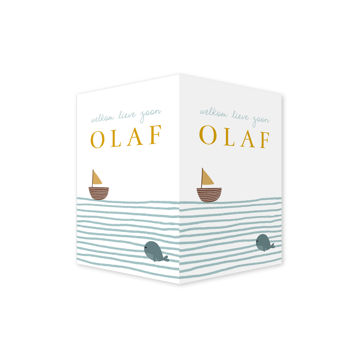 Maak de geboorte van je kindje bekend met dit vrolijke dubbele raambord (40 x 60 cm) met een minimalistische illustratie van een blauwe oceaan met walvis en zeilbootje.