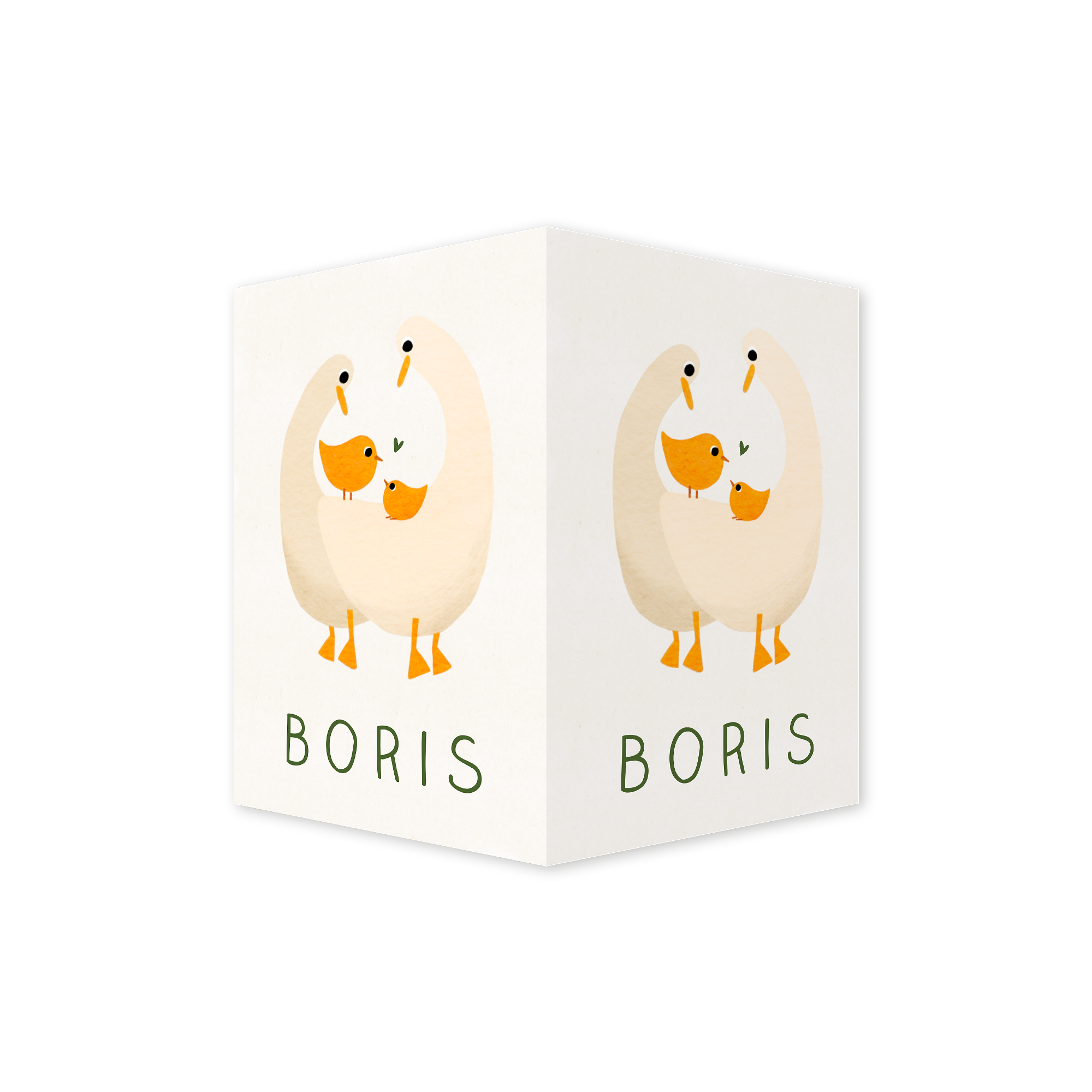 Maak de geboorte van je kindje bekend met dit lieve dubbele raambord (40 x 60 cm) met een illustratie van een gezinnetje van gansjes. De bloementjes erbij maken het vrolijke plaatje helemaal af! Een perfect ontwerp voor een grote broer of zus.