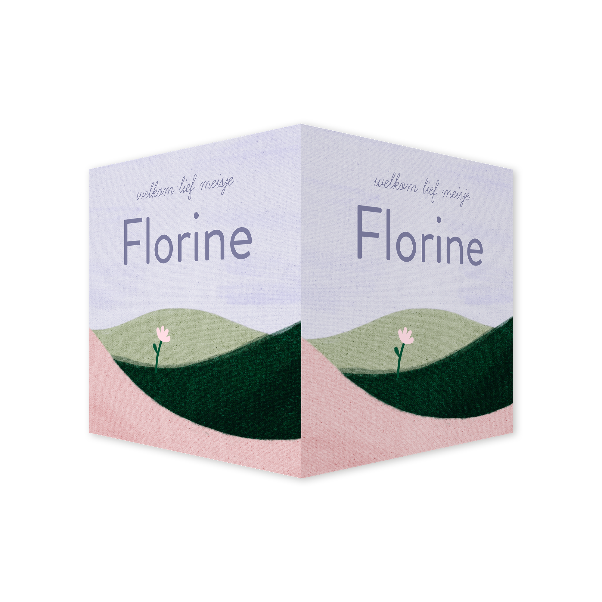 Maak de geboorte van je kindje bekend met dit vrolijke dubbele raambord (50x50 cm) van een weids landschap met kleurrijke heuvels. Bestel 'm vooraf zonder datum, met alleen de naam of juist direct nadat de baby is geboren, met de datum.