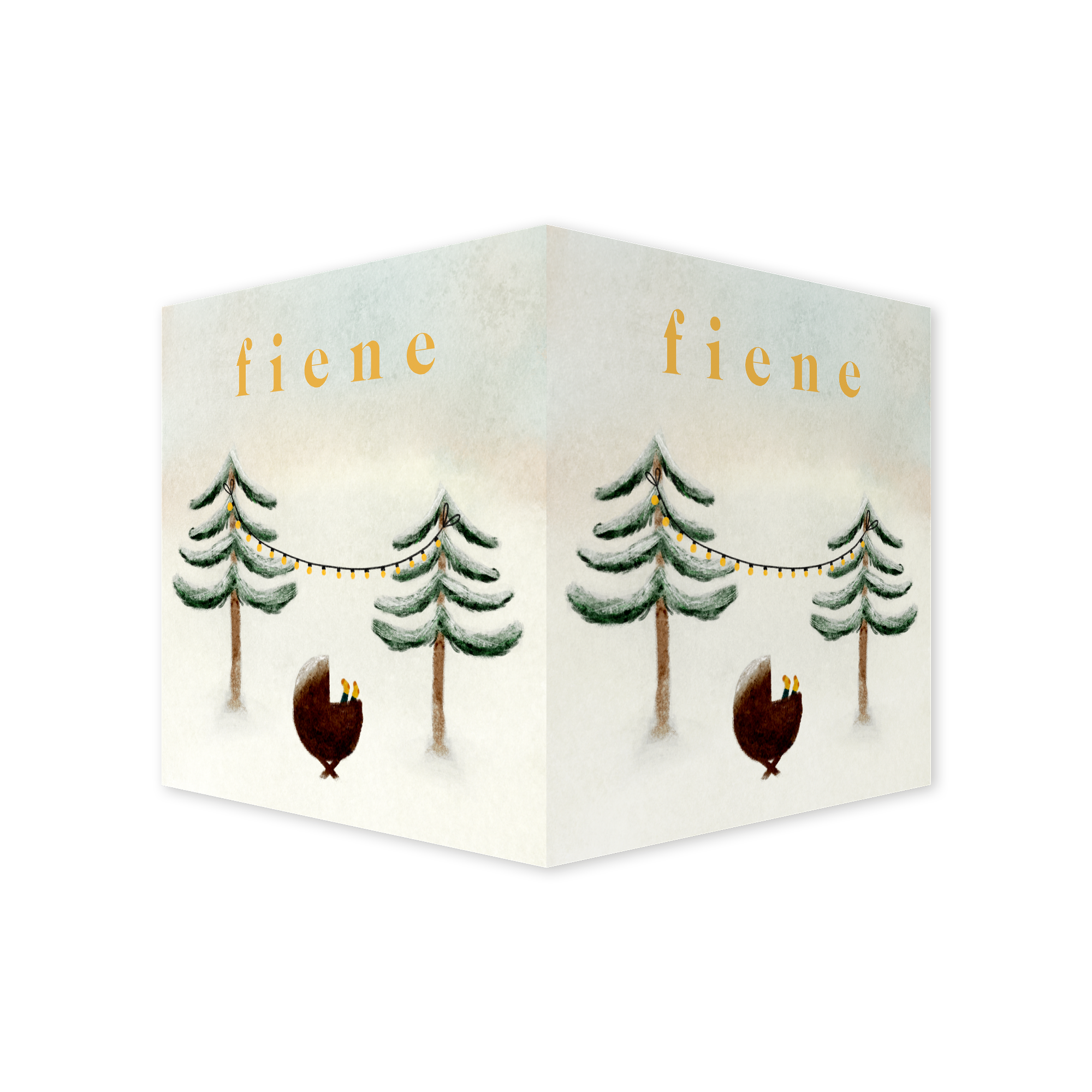 Dubbel raambord (50x50 cm) met een winters tafereel van een bos vol sneeuw en gezellige lampjes. In het bos staat een wiegje met lieve voetjes.