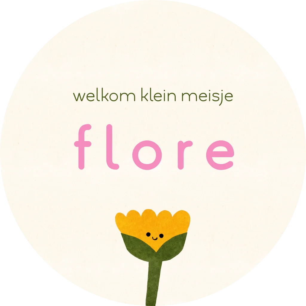 Maak de geboorte van jullie kindje bekend met deze leuke raamsticker (doorsnede 60 cm) met vrolijke bloem. Het ontwerp is minimalistisch en uitgevoerd in trendy zomerse kleuren.