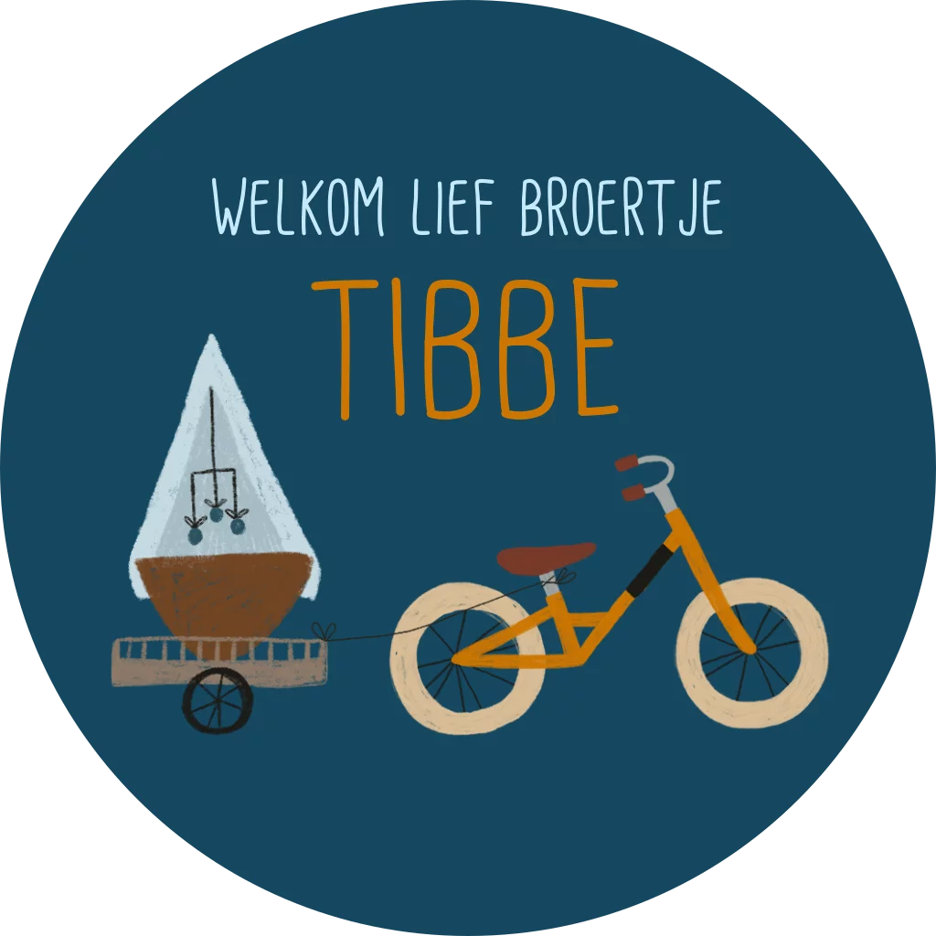 Maak de geboorte van jullie tweede kindje bekend met deze leuke raamsticker (doorsnede 60 cm) met naam en illustratie van een veloretti loopfietsje met een karretje en wiegje erop. Bestel 'm vooraf of juist direct nadat de baby is geboren, met de datum erop. De raamsticker is op aanvraag ook beschikbaar in formaat 40 cm, 80 cm en 100 cm.