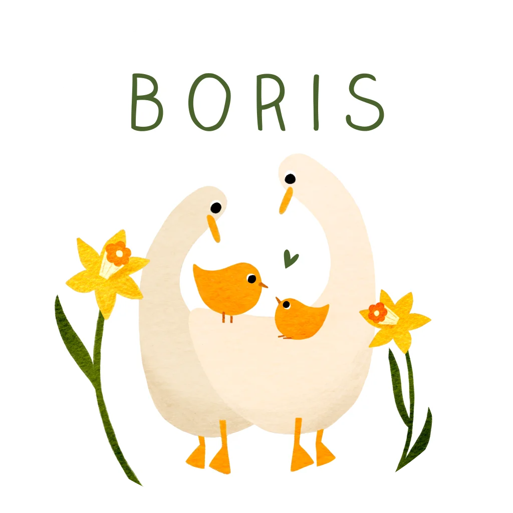 Maak de geboorte van jullie kindje bekend met deze leuke raamsticker (doorsnede 60 cm) met een illustratie van een gezinnetje van gansjes. De bloemetjes erbij maken dit vrolijke plaatje helemaal af!