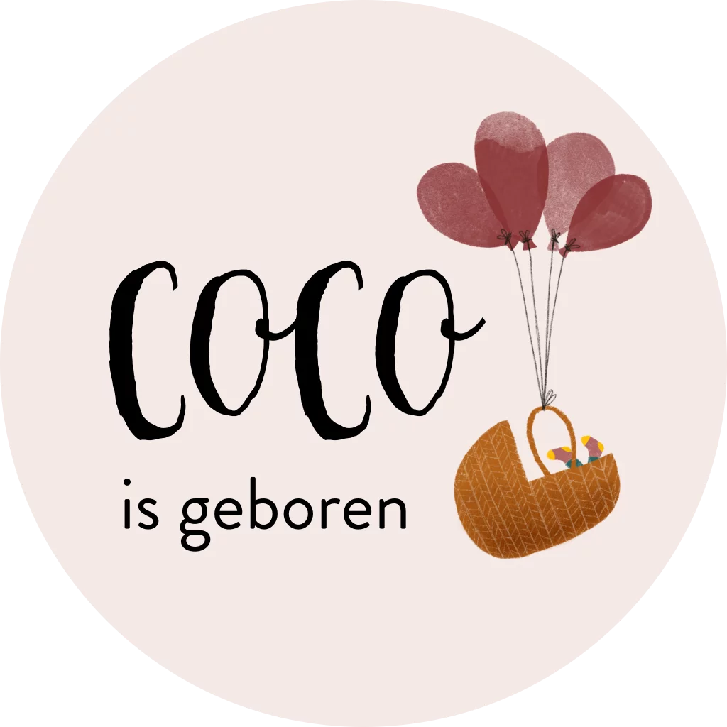 Maak de geboorte van jullie kindje bekend met deze leuke raamsticker (doorsnede 60 cm) met naam en baby in mandje met ballonnen. Bestel 'm vooraf of juist direct nadat de baby is geboren, met de datum erop.
