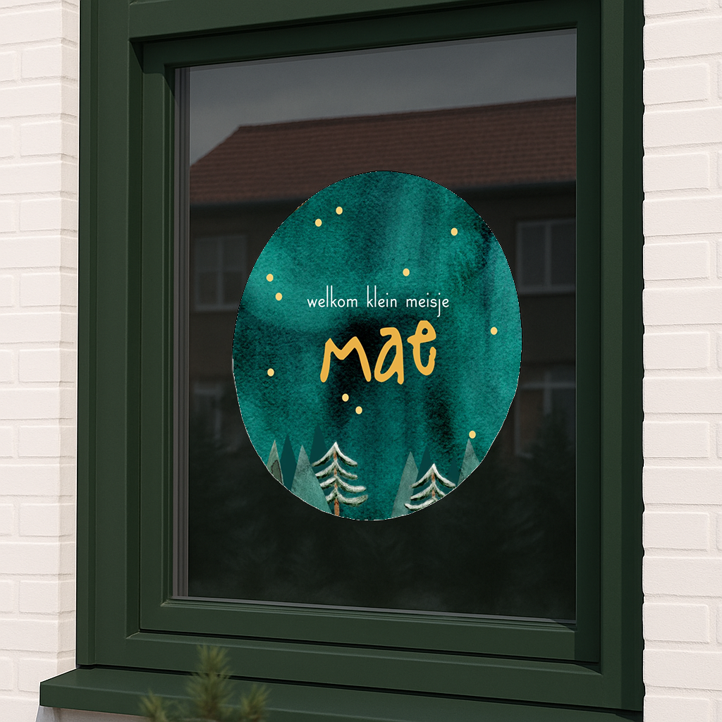 Deze raamsticker is perfect om de geboorte van je kindje mee bekend te maken. De sticker is 60 cm doorsnede en op aanvraag ook beschikbaar in de formaten 40 cm, 80 cm of 100 cm. Je kunt het ontwerp zelf eenvoudig aanpassen in de editor. Bestel de raamsticker vooraf of juist direct nadat de baby is geboren, met de datum erop.