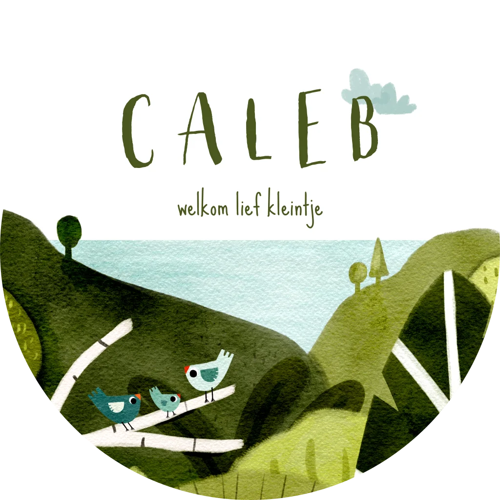 Maak de geboorte van jullie kindje bekend met deze leuke raamsticker (doorsnede 60 cm) met een illustratie van een landschap vol groene bomen. Vooraan op de tak zit een lief klein vogel gezin.
