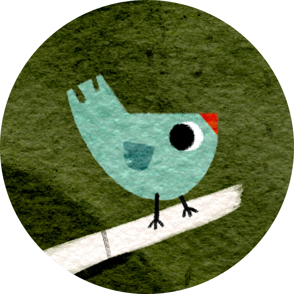 Leuke sluitzegel met een kleine blauwe vogel op een tak in het bos, perfect voor op de envelop of doopsuikers.