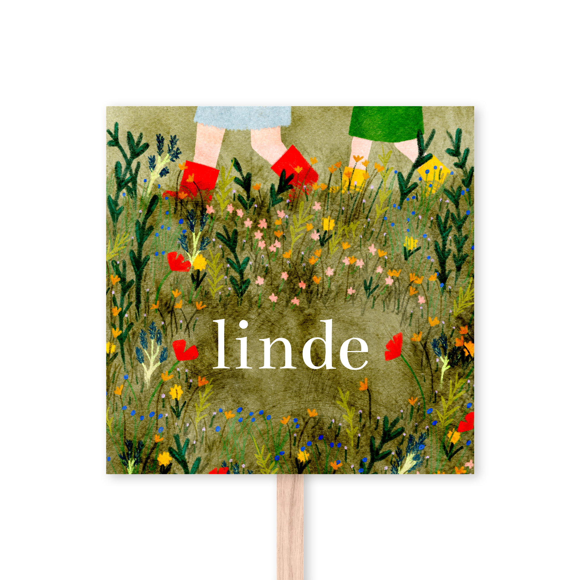 Kondig de geboorte van je kindje aan met dit leuke tuinbord. Het bord staat boordevol gezellige veldbloemen zoals klaprozen. Bovenin zie je de beentjes van een grote zus en klein zusje, die met hun laarsjes door het veld op avontuur gaan.