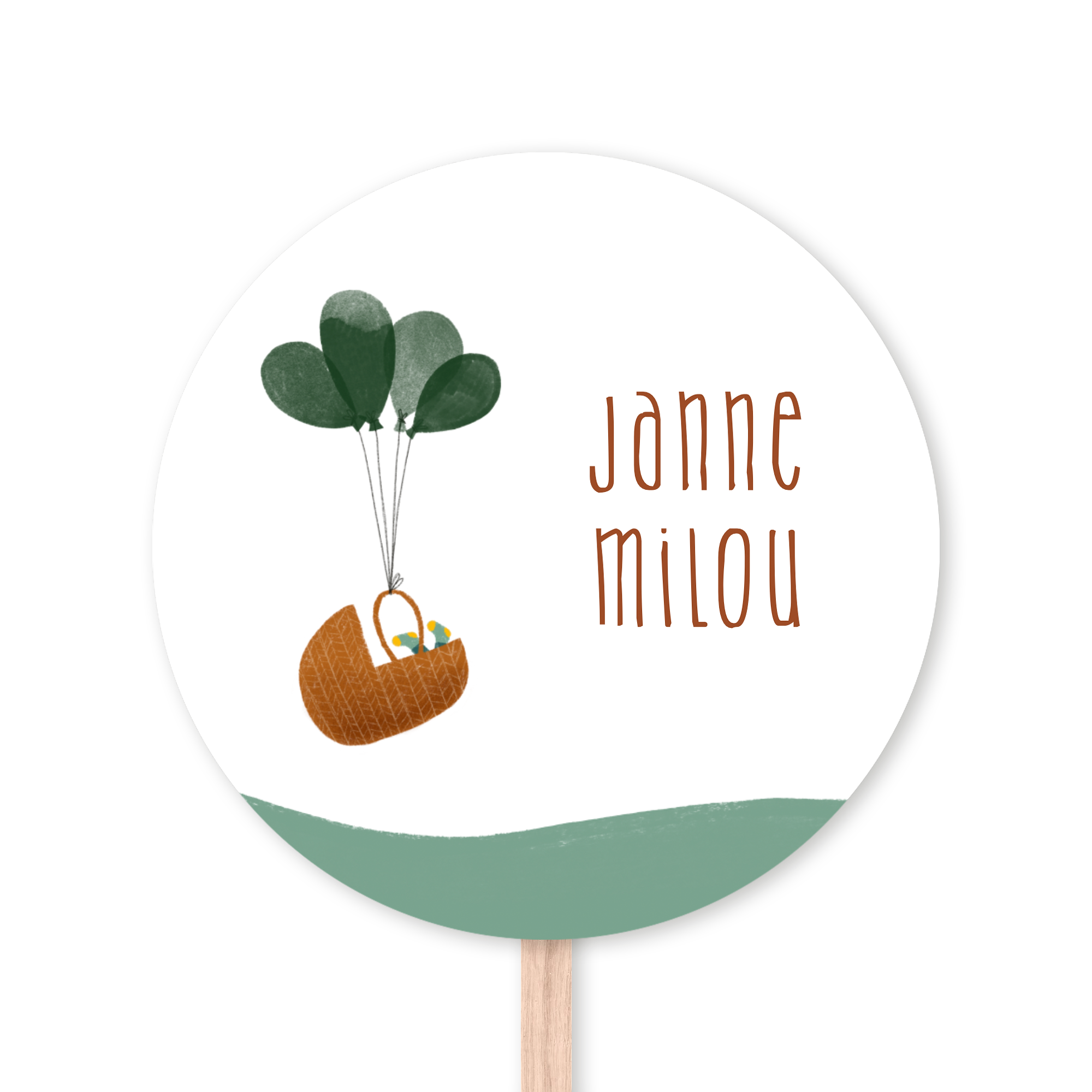 Maak de geboorte van je kindje bekend met dit ronde tuinbord met wiegje en ballonnen.