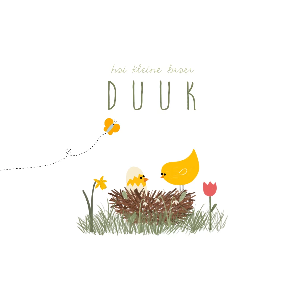 Geboortekaartje lente kuikentjes grote broer zus