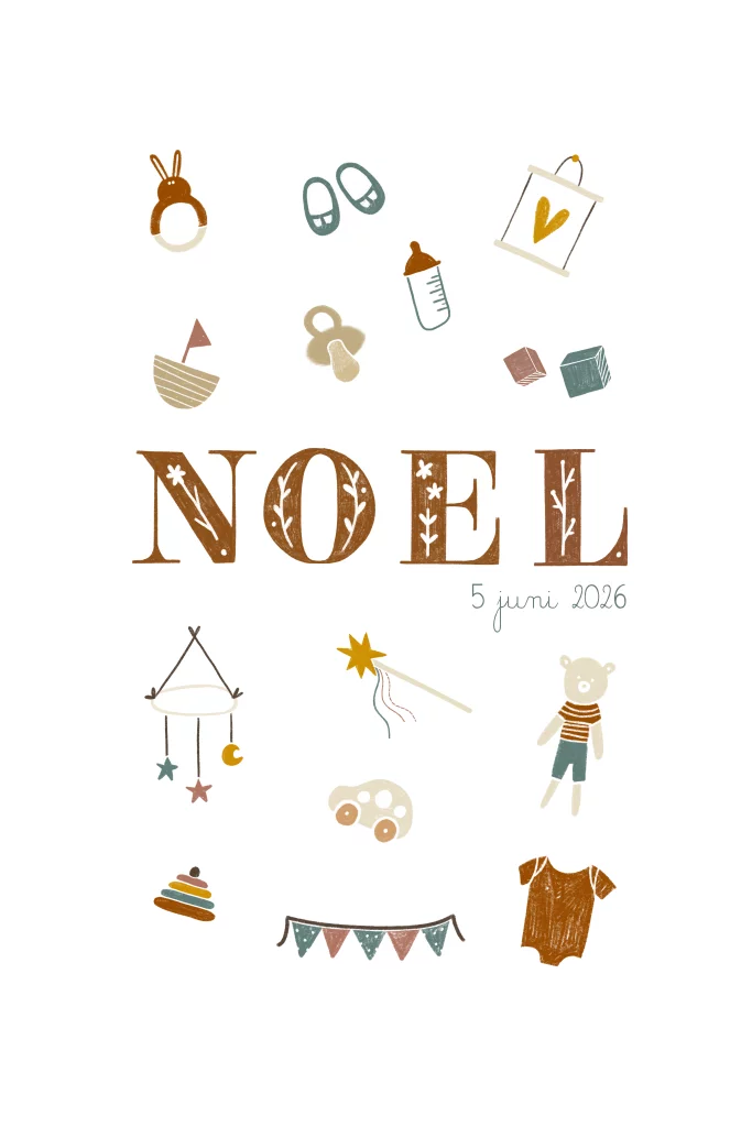 Geboortekaartje babykamer elementjes alfabet
